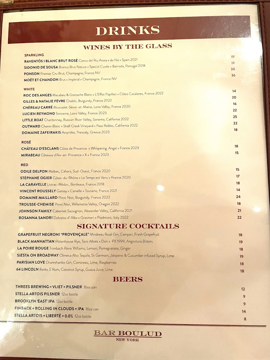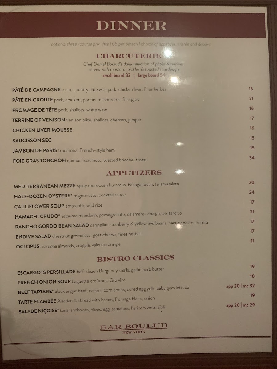 Bar Boulud Menu